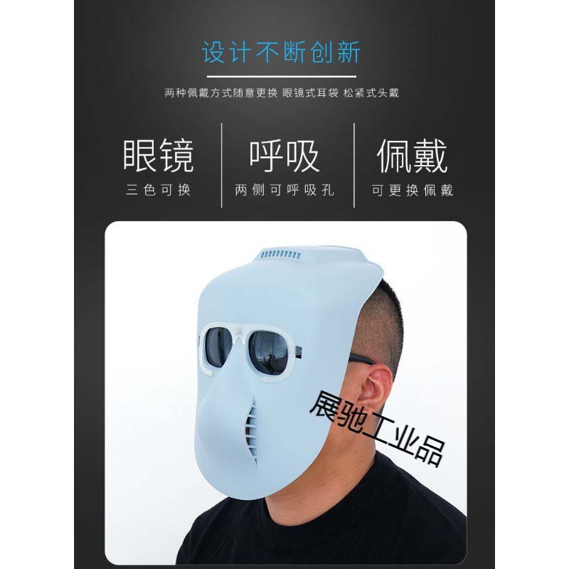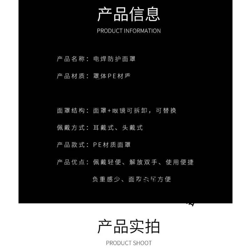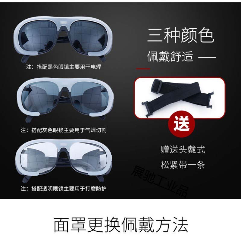 商品名称:电焊面罩护脸护额头焊工防护眼镜头戴式护目氩弧焊接二保焊烧全脸PP透气轻便面罩+3色眼镜(送绑带)