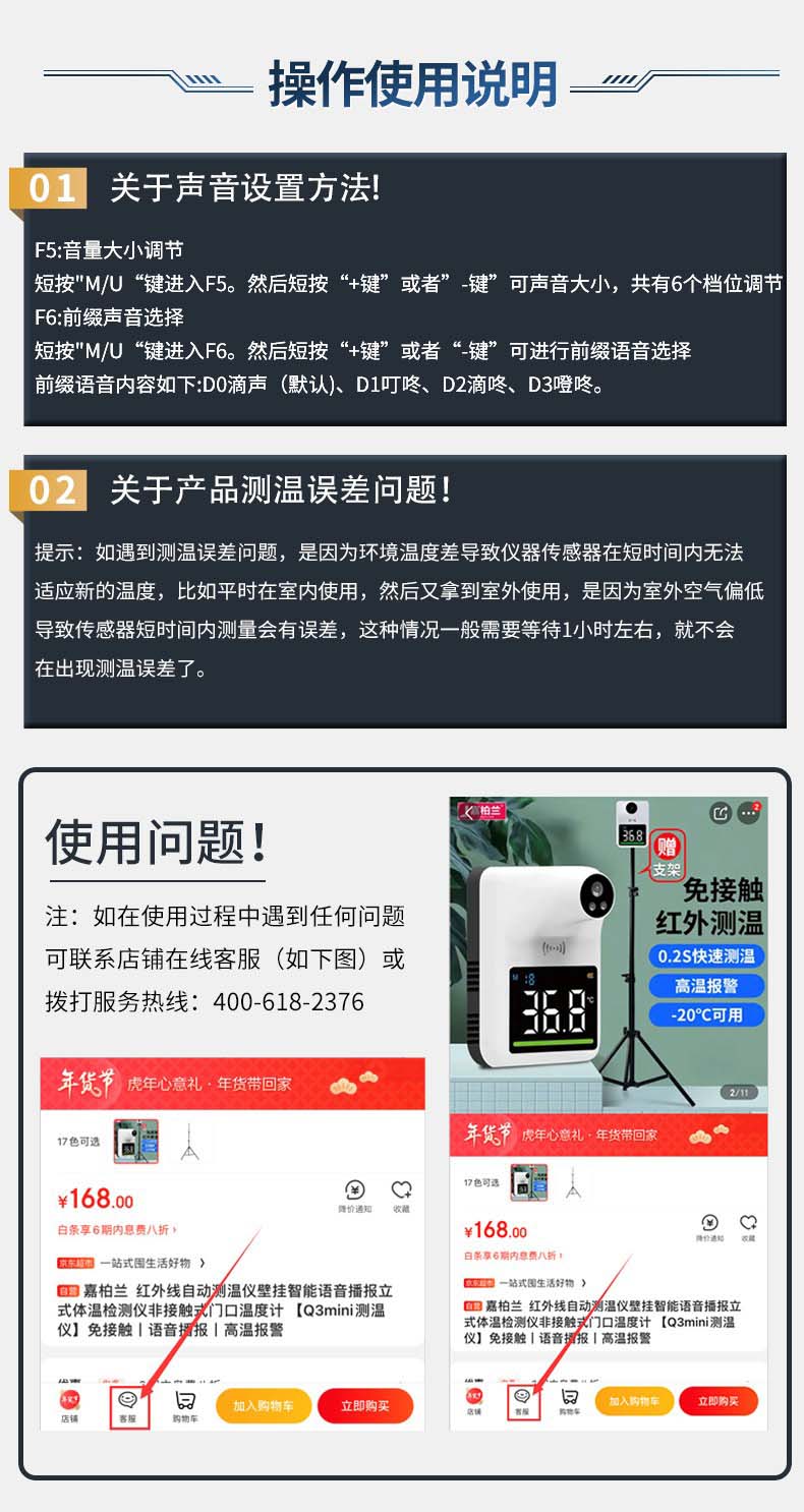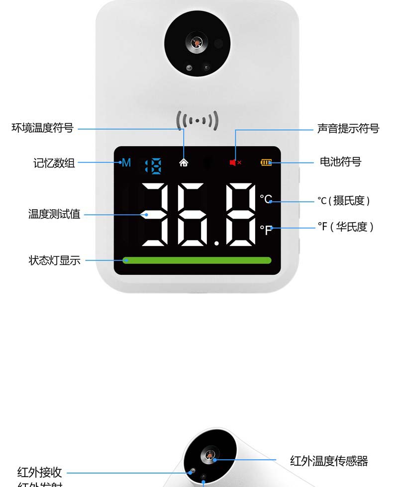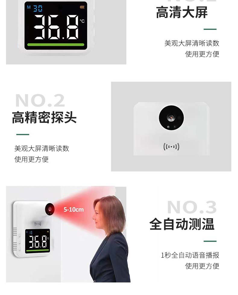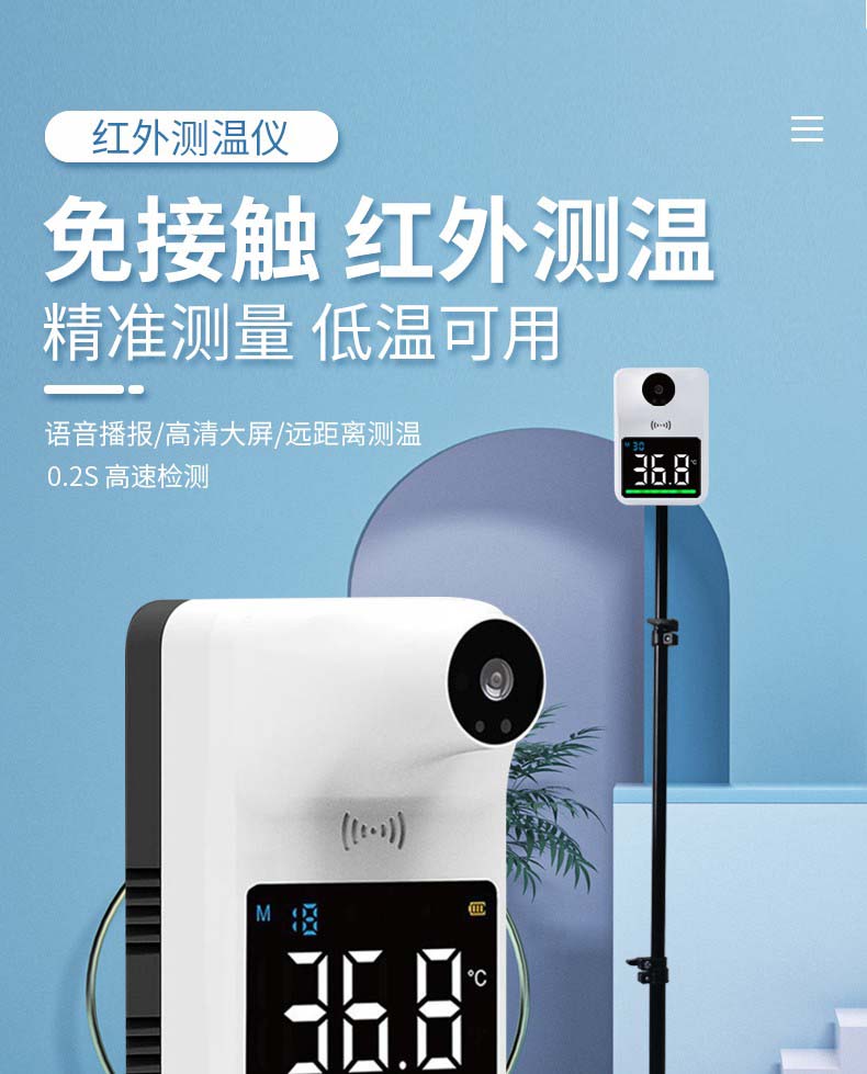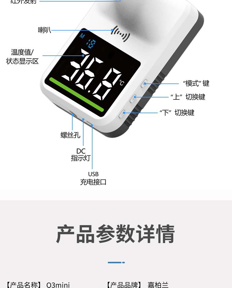 嘉柏兰 红外线自动测温仪壁挂智能语音播报立式体温检测仪非接触式门口温度计 【Q3mini测温仪】免接触丨语音播报丨高温报警