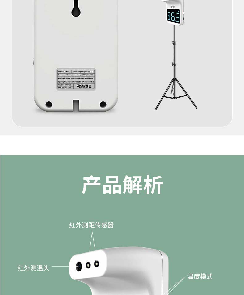 牧安宁 红外线测温仪立式人体自动感应测温枪非接触壁挂智能门口体温检测仪器高精准语音播报电子温度计 k3mini测温仪【语音播报+充电电池+高温报警】