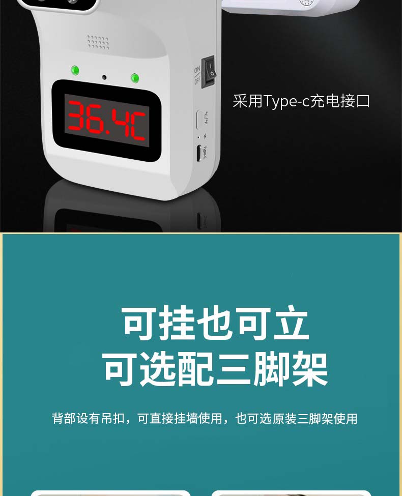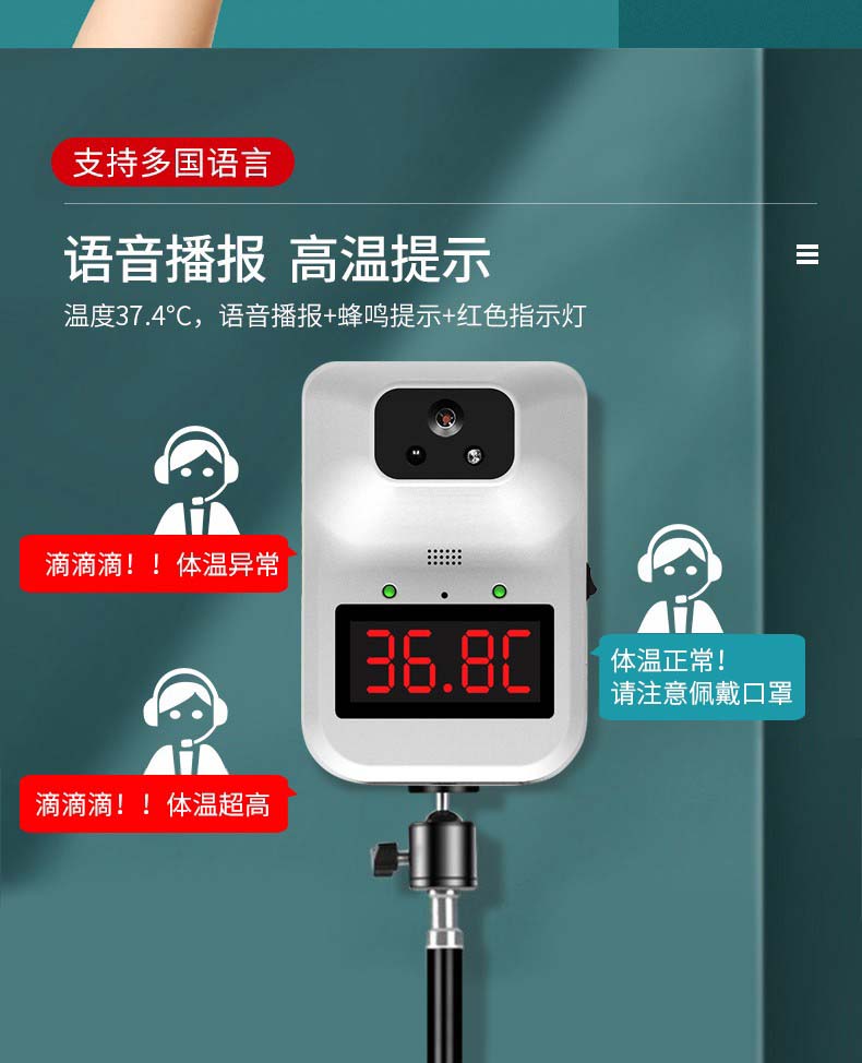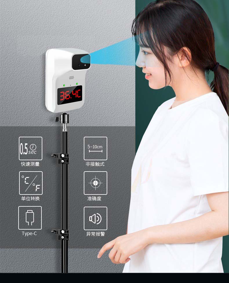 牧安宁 红外线测温仪立式测精准测温枪智能语音播报壁挂人体温度检测仪非接触式全自动门口电子温度计 Q1红外线测温仪【语音播报+充电电池+高温报警】