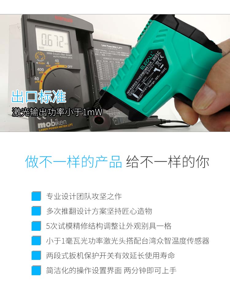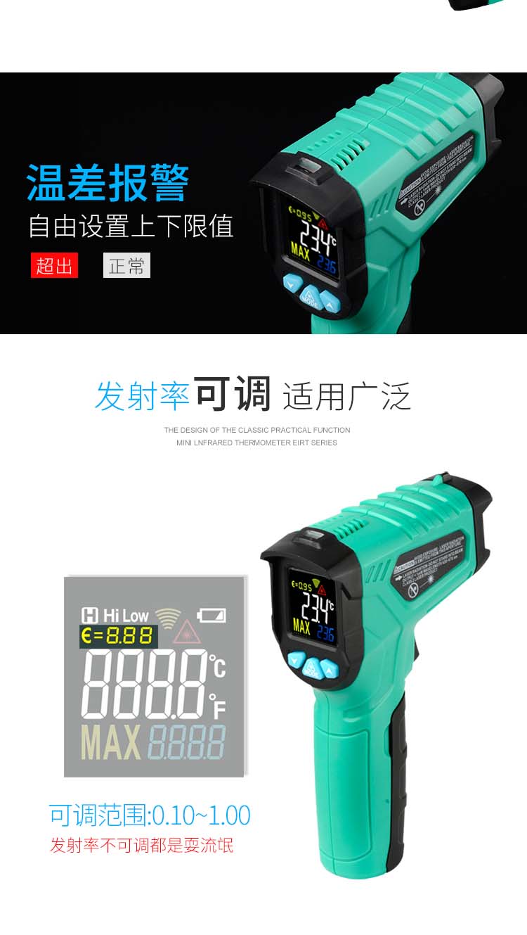 伊莱科 (ELECALL)红外线测温仪 手持式数显高精度油温枪工业级温度计