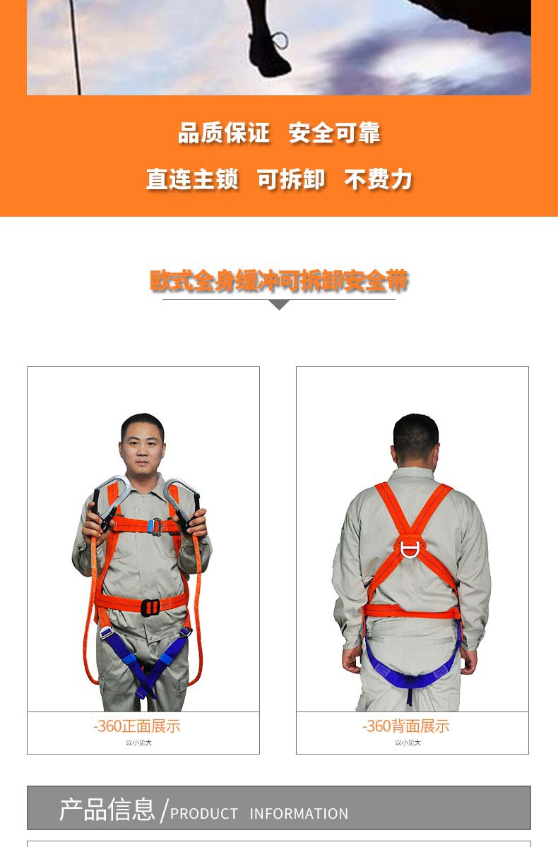 商品名称:高空作业安全带户外安全绳全身五点欧式保险带双钩全身式防坠落缓冲包建筑工作户外施工防护高空安全带2米大钩单绳