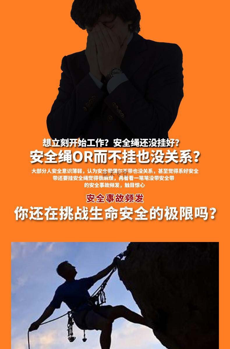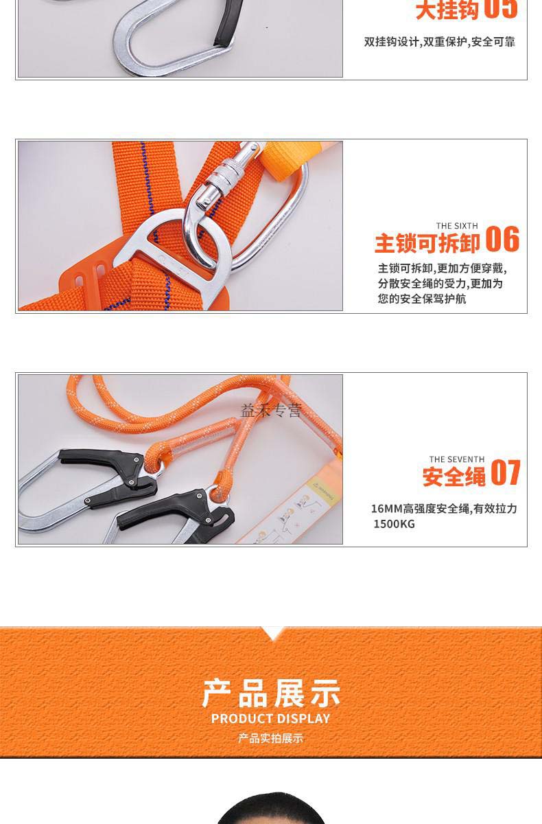 商品名称:高空作业安全带户外全身五点欧式保险带双钩双挂钩安全带防坠落缓冲包建筑工作户外施定制国标橘色双大钩3米