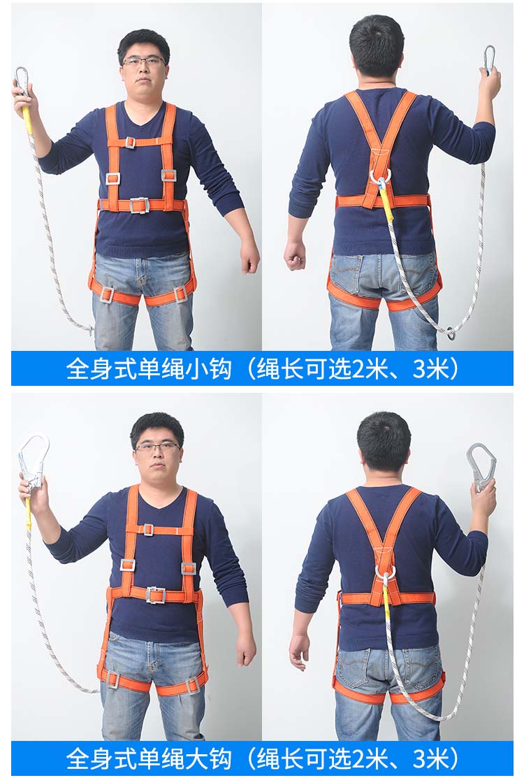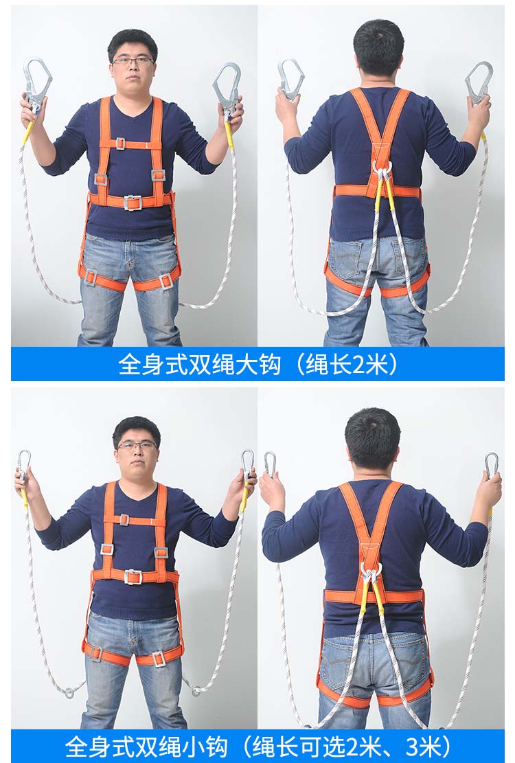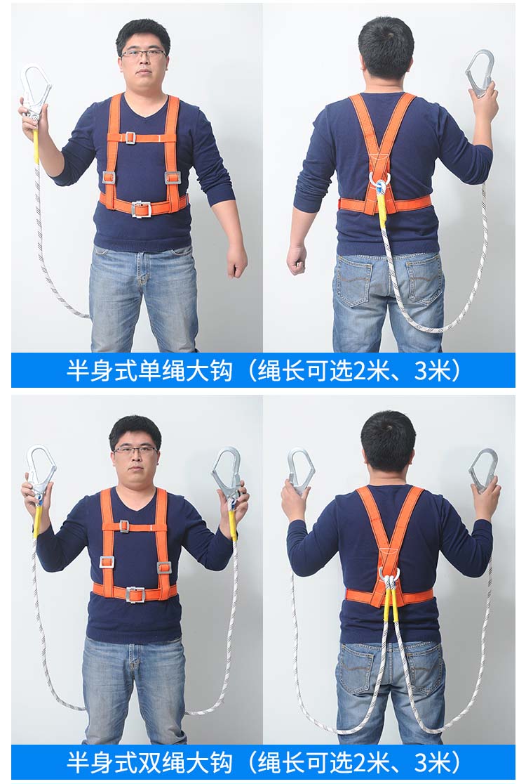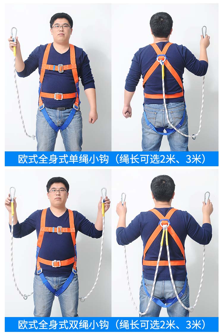 商品名称:高空作业安全带户外施工保险带全身五点欧式空调安装安全绳电工带定制!半身式白色单绳小钩2米默认