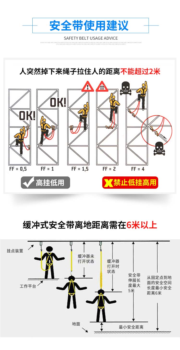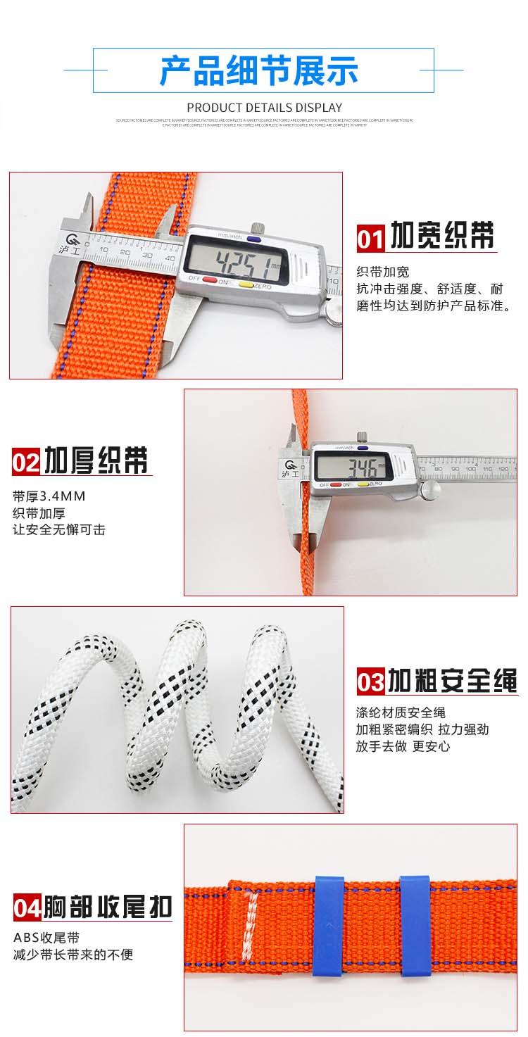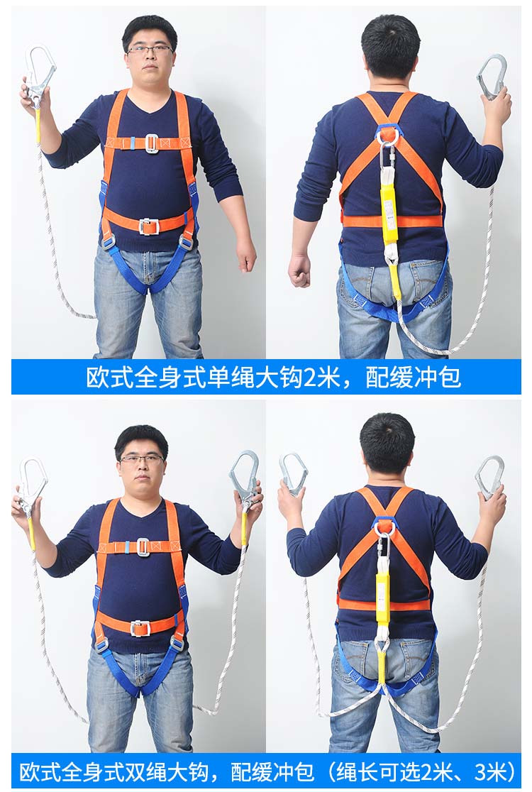 商品名称:高空作业安全带户外施工保险带全身五点欧式空调安装安全绳电工带定制!半身式白色单绳小钩2米默认
