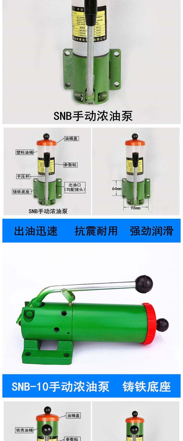 商品名称:冲床手动浓油泵SNB10 手压式黄油泵 搅拌机油脂泵 铸铁润滑加油泵 4孔塑料油桶