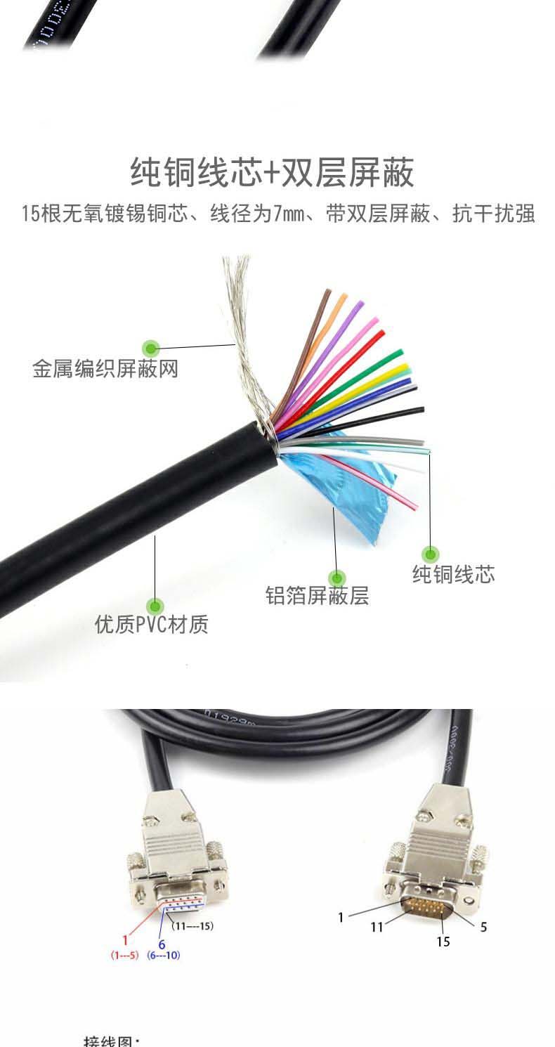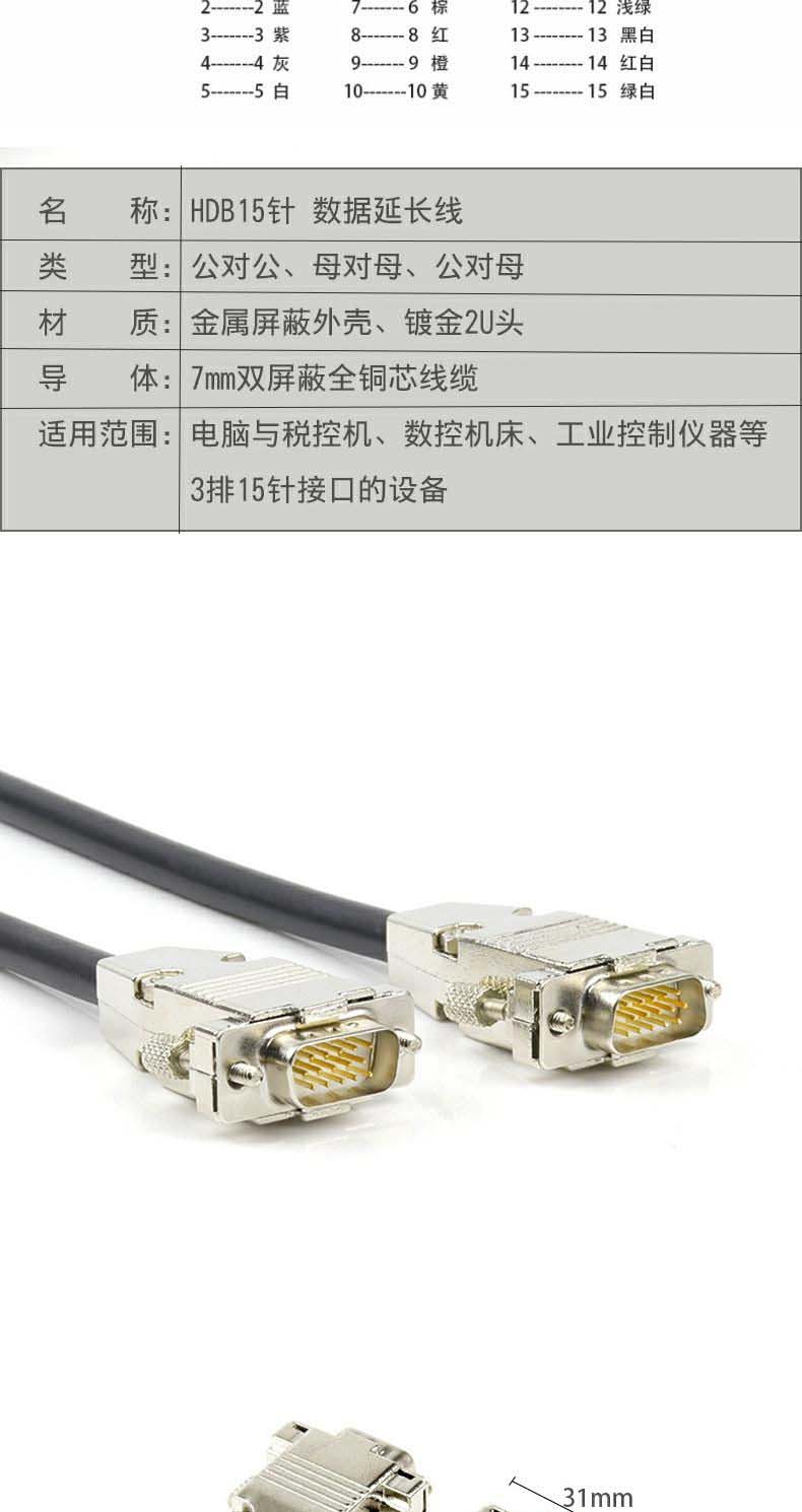 商品名称:定制适用HDB15连接线3排15针数据线公对公对母对母DB15连接线数控机床通讯公对公连接线1.5m