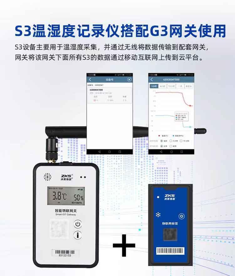 商品名称:洲斯物联 无线温湿度记录仪 ZKS-S3 冷冻/质保三年 含第三方CNAS校准证书和平台服务费