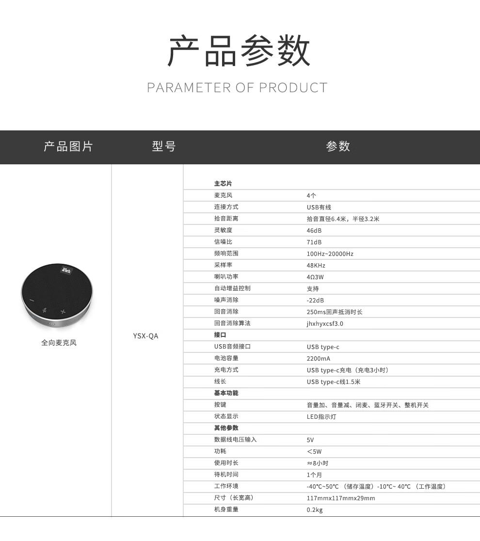 产品名称:易视讯无线视频会议全向麦克风 YSX-QA