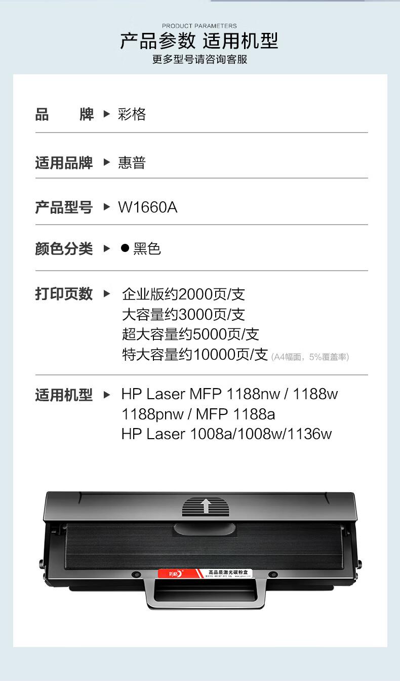 产品名称:彩格国产硒鼓(黑白) W1660A