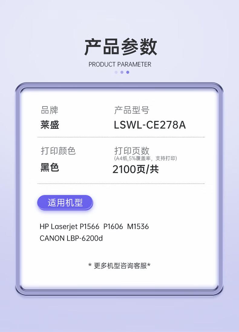 产品名称:莱盛国产硒鼓(黑白) CE278A