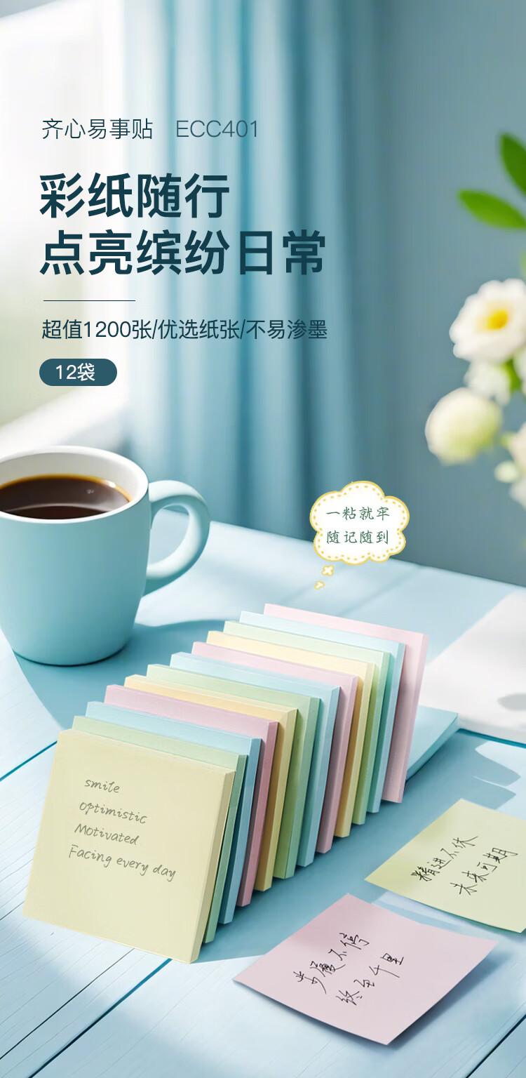 晨光(M&G)YS-03 单色便利贴 3X3优事贴 100页自粘便利贴 告示贴 便签纸 76X76mm
