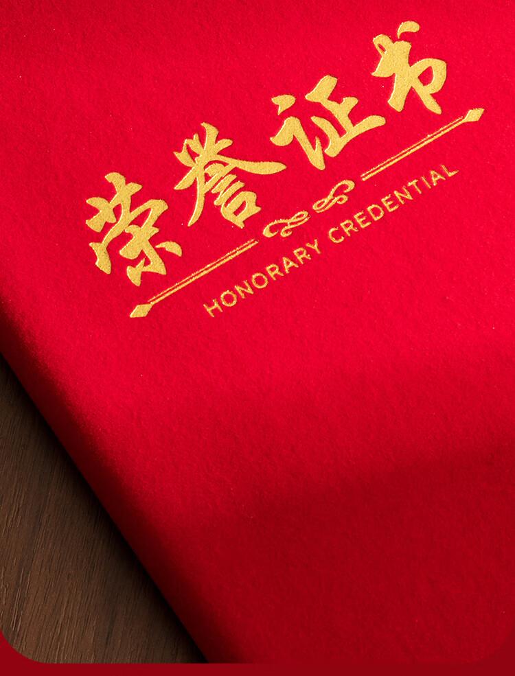 类型:红绒荣誉证书