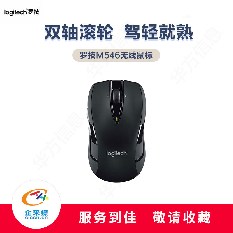罗技(Logitech)M546(M545) 鼠标 无线鼠标 办公鼠标 对称鼠标 优联 双轴滚轮 黑色 带无线2.4G接收器