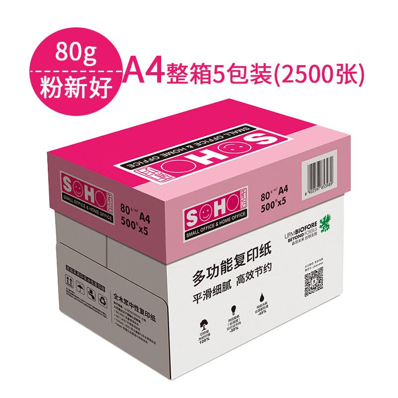 逸之星UPM复印纸新好A4纸A3办公家用白打印纸学生试卷用纸标书合同书写 新好粉色A4-80g-5包装 210*297