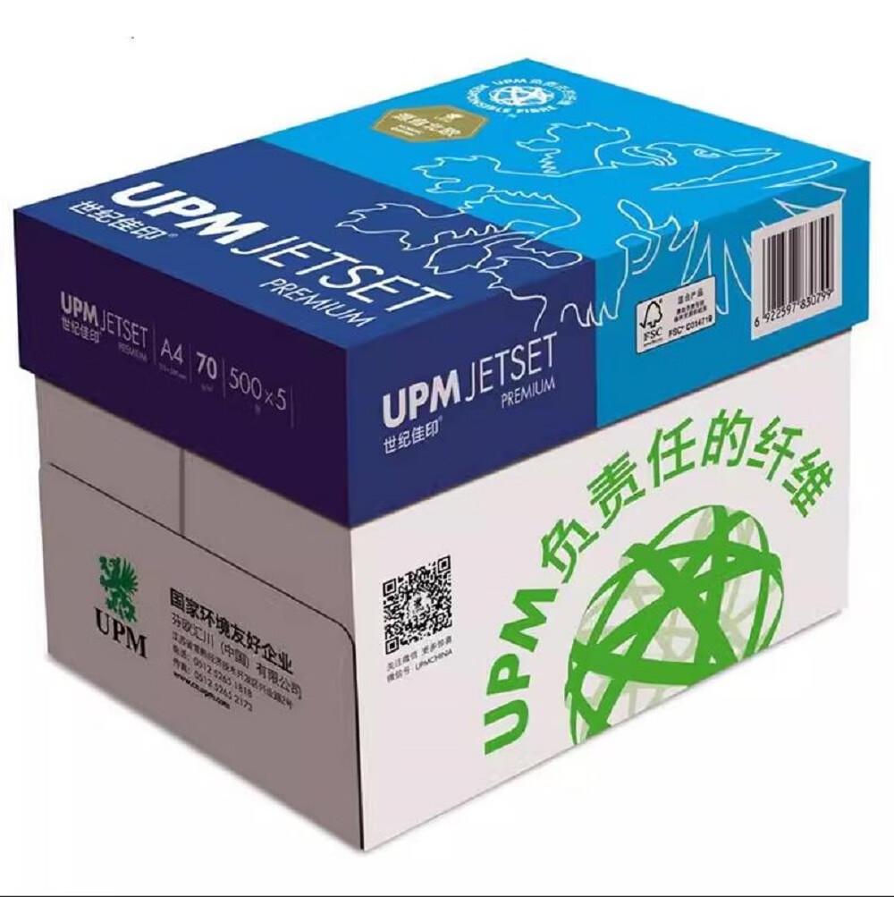 UPM蓝世纪佳印A4纸复印纸白纸70g/80g办公用品打印机纸500张整箱一箱批发草稿纸学生用白色纸打印A4纸 A4-绿佳印-80G-5包-2500张