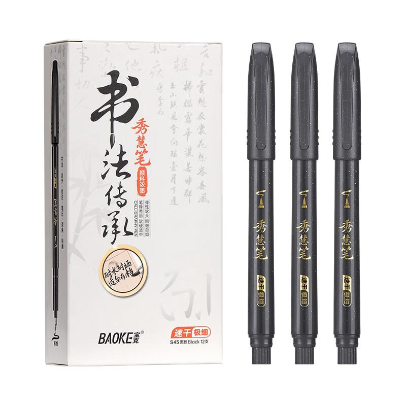 宝克(BAOKE)S45 秀丽笔极细书法笔 毛笔练字请柬签名入门初学者速干绘画美工秀慧笔 黑色 12支/盒