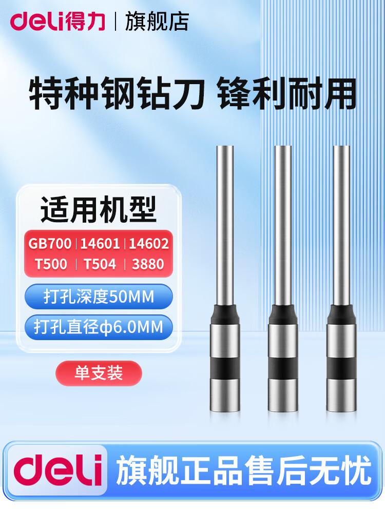 得力钻头财务会计凭证铆管装订机钻刀耗材打孔机打孔器空心刀头适用于3888/14601/33669 3839|适用14601/14602|一支装 钻刀+配套扳手