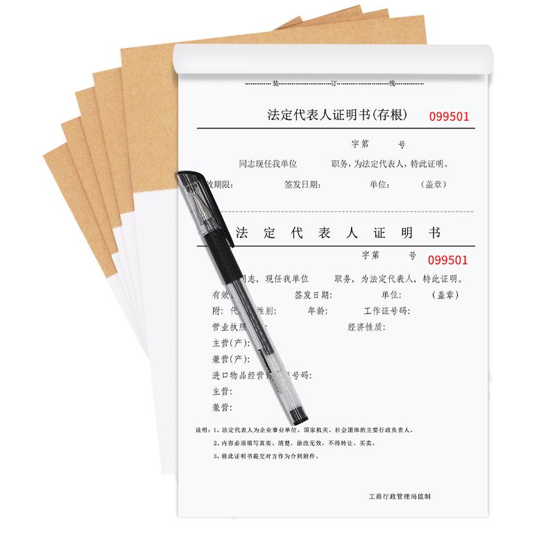 浩立信 法定代表人证明书 带编号存根法人代表证明书代办事书委托书5本装